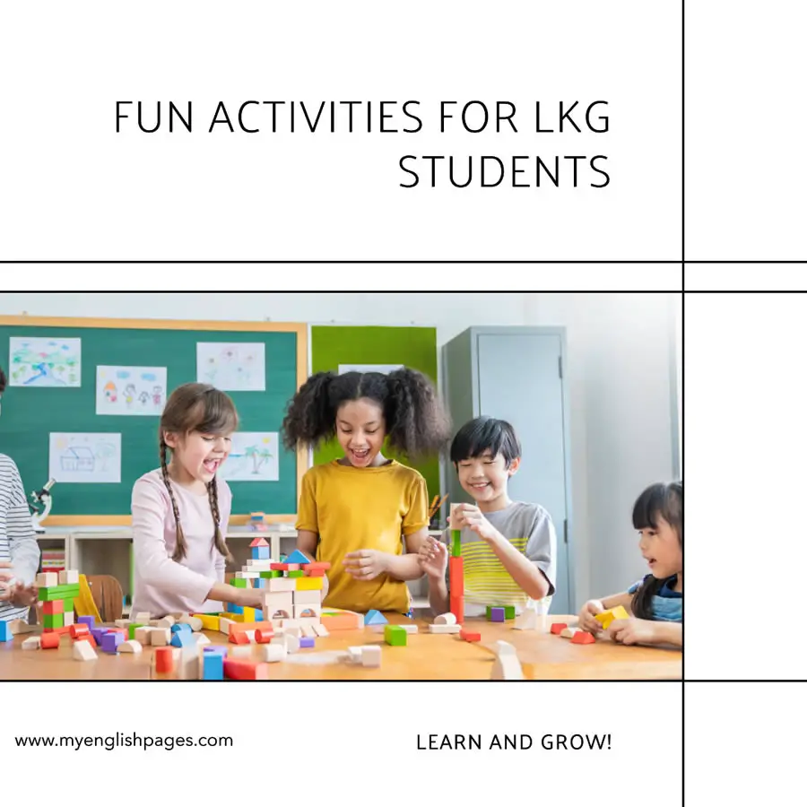 Engaging activities for LKG students include outdoor games, dancing, puzzles, storytelling, arts and crafts, group games, and pretend play.