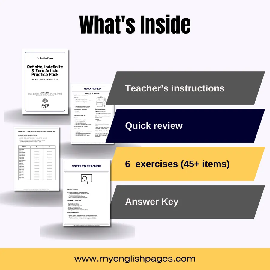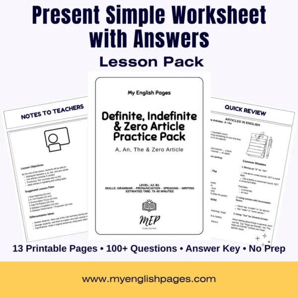 Teach articles in English with confidence using this ready-to-use, classroom-tested worksheet pack. This 13-page PDF includes clear explanations, structured practice, pronunciation work, and a communicative speaking task — all designed for ESL/EFL learners.
