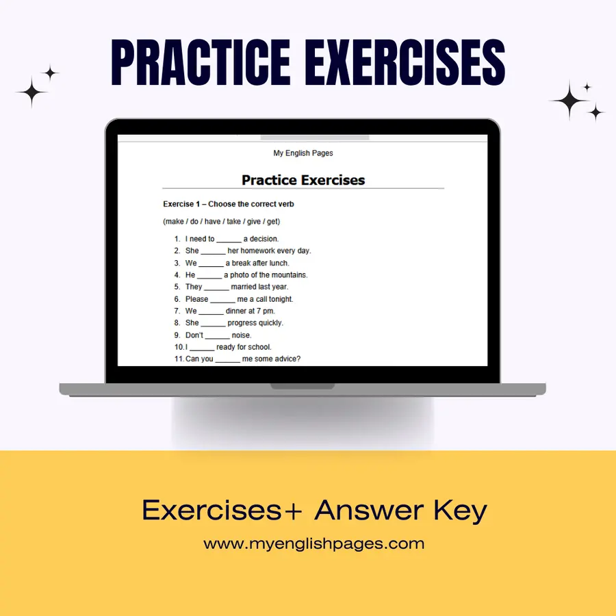 ✅ Verb + noun collocations (make, do, have, take, give, get, etc.)