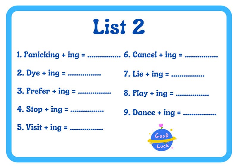 - A flashcard containing 9 spelling rules that govern the “-ing” form