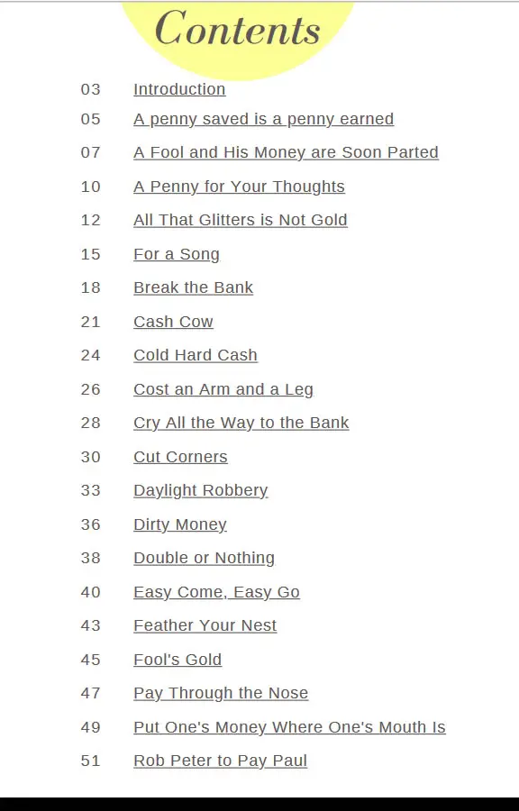 This ebook helps you quickly learn and remember the most common money-related idioms in clear, simple English.